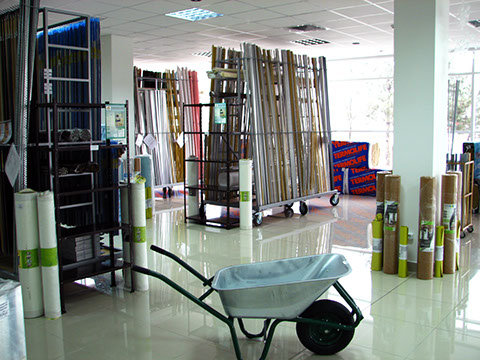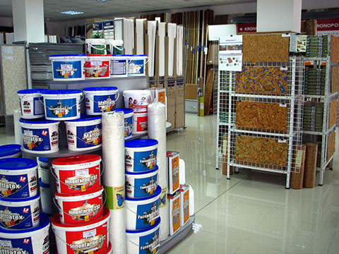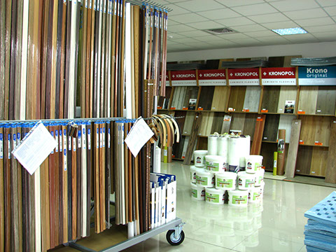 В торговом центре и магазинах фирмы представлен широкий выбор лакокрасочных изделий, ламината, подкровельных материалов. Тут Вы сможете купить подвесные потолочные конструкции, подоконники, а так же новый эко материал – плиты OSB и покрытия из натуральной пробки.